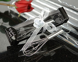 Whisk a little love and affection into every dish with this whimsical favor. Each stainless-steel whisk has a cleverly enclosed heart and heart-shaped handle top. Let your guests cook up some magic with a heartfelt reminder of your gratitude. Features and facts: