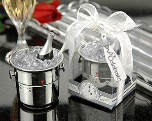 It's about time...to celebrate! This clever and elegant little favor adds polished silver-toned touches and works fabulously for any event. It's hard to decide what makes this favor more special the fact that it is fully functional or its darling little details! Features and facts:
