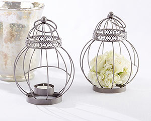 The soft flame of a tealight dances like a bird's wings when nestled inside Kate Aspen's beautiful Vintage Bird Cage Lantern! An excellent piece to incorporate into your table settings as you set the mood for your romantic English garden theme wedding or tea party bridal shower, these vintage inspired lanterns also work well at any event looking for a bit of a whimsical touch. Features and facts:
